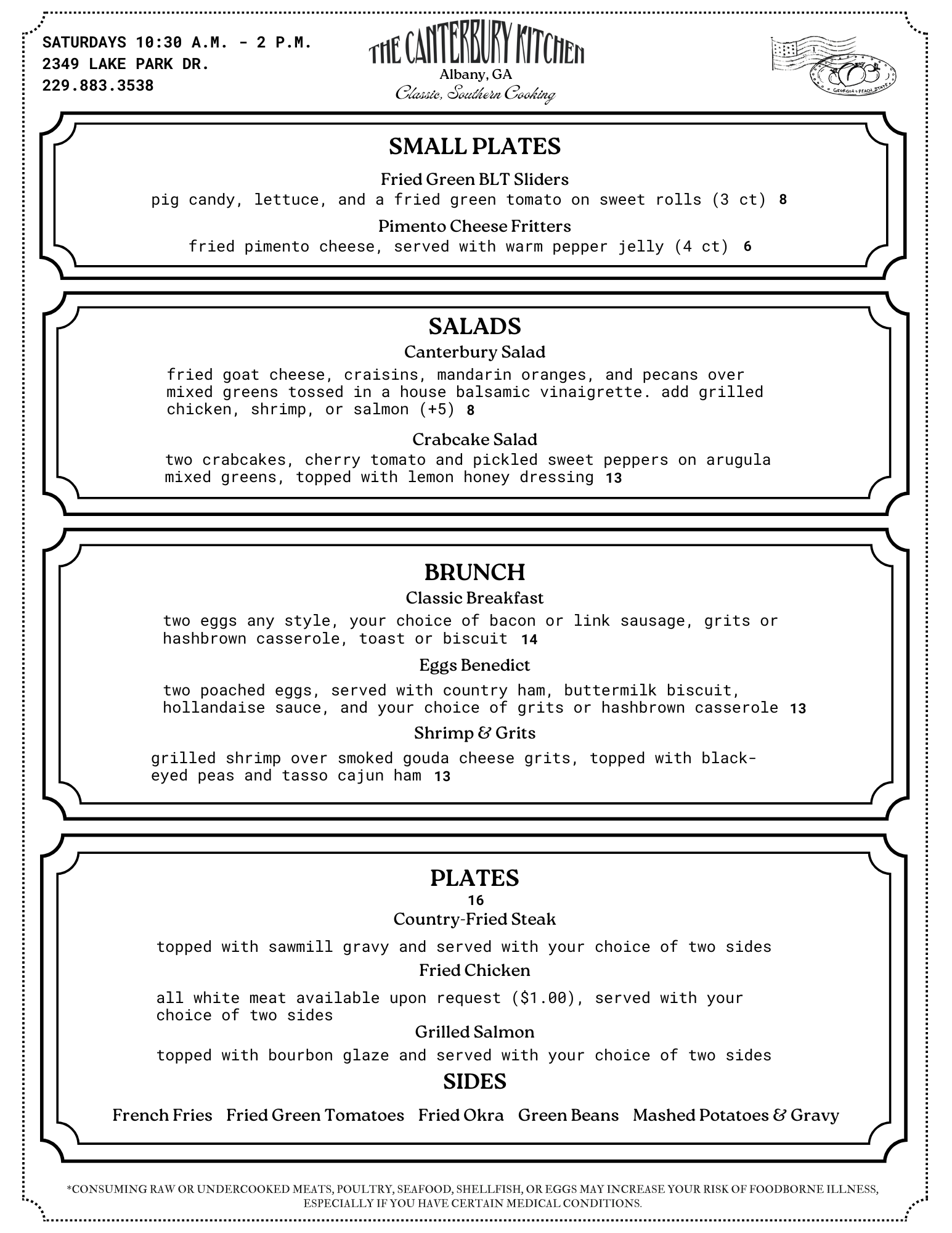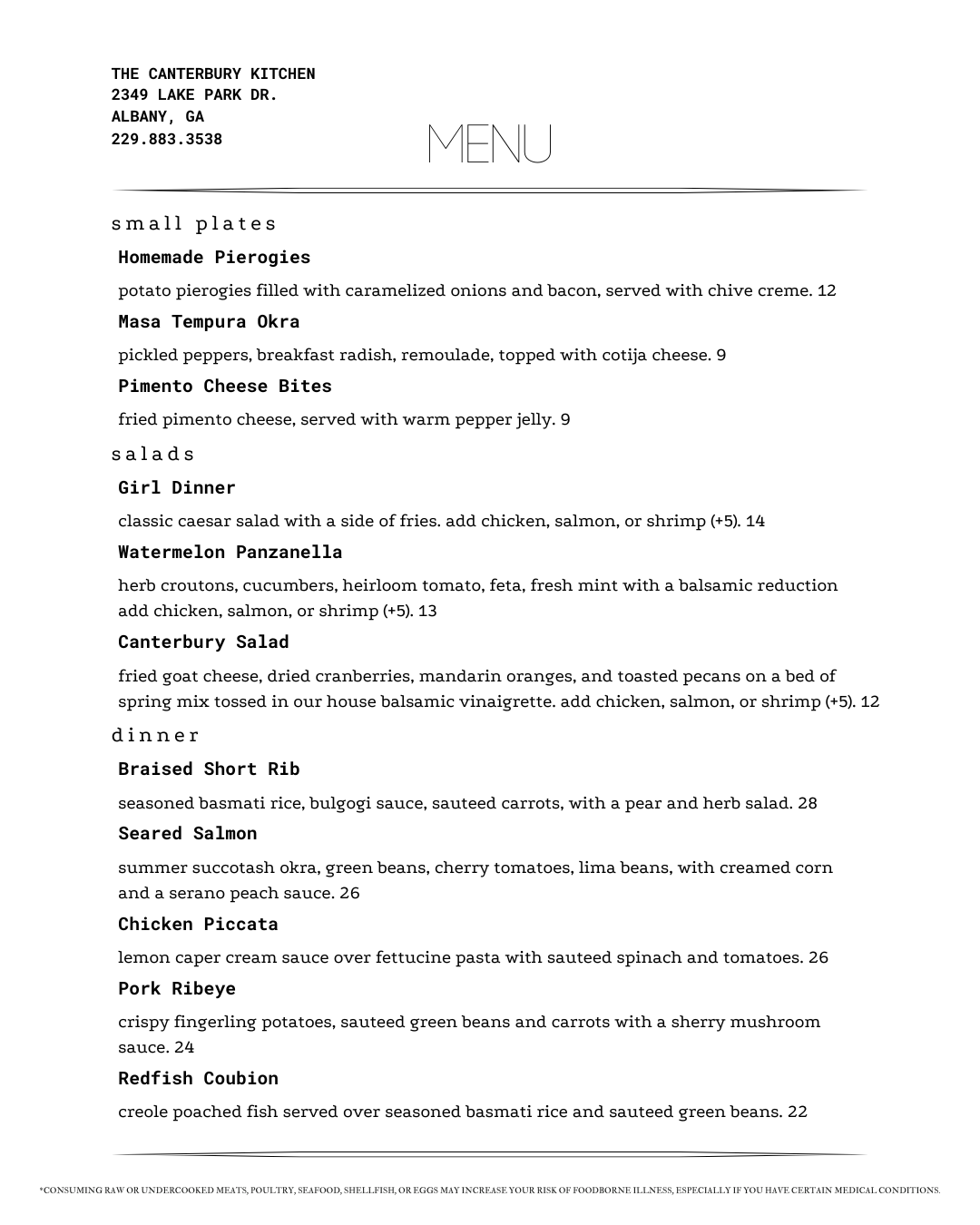 If you’re interested in booking an event at The Canterbury Kitchen, please use the form below or give us a call at (229) 883-3538.